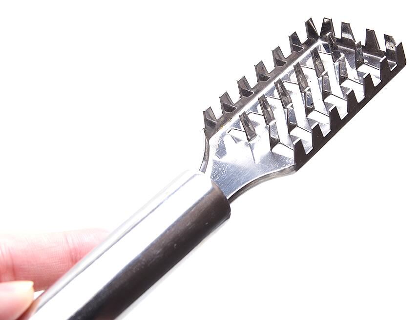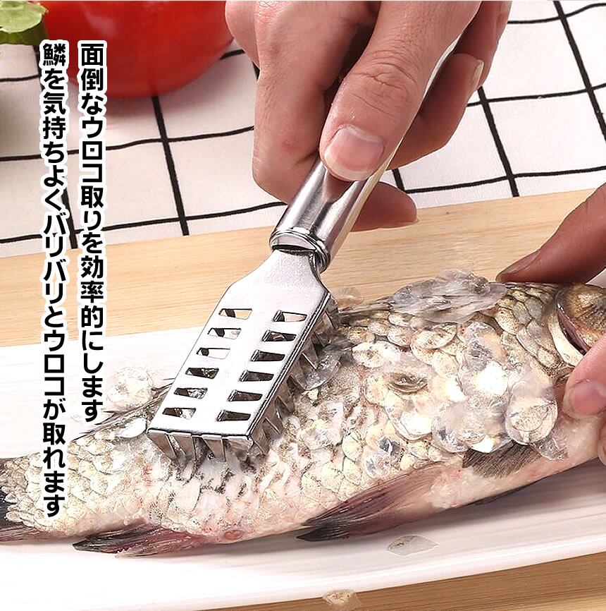 ステンレス鱗取りは、魚の鱗を手早く効率的に取り除くためのキッチンツールです。高品質のステンレススチール製で、錆びにくく耐久性に優れており、長期間にわたって使用することができます。鋭い刃とグリップしやすい持ち手が特徴で、安全かつ効果的に鱗を取り除くことができます。さらに、鱗が飛び散らないよう工夫されたデザインは、キッチンを清潔に保つのに役立ちます。使用後のお手入れも簡単で、食洗機対応なので、忙しい日常でも便利です。シンプルで実用的なデザインは、プロのシェフから家庭の料理愛好家まで、幅広いユーザーに対応しています。ステンレス鱗取りは、魚料理を手軽に楽しむための必須アイテムです。