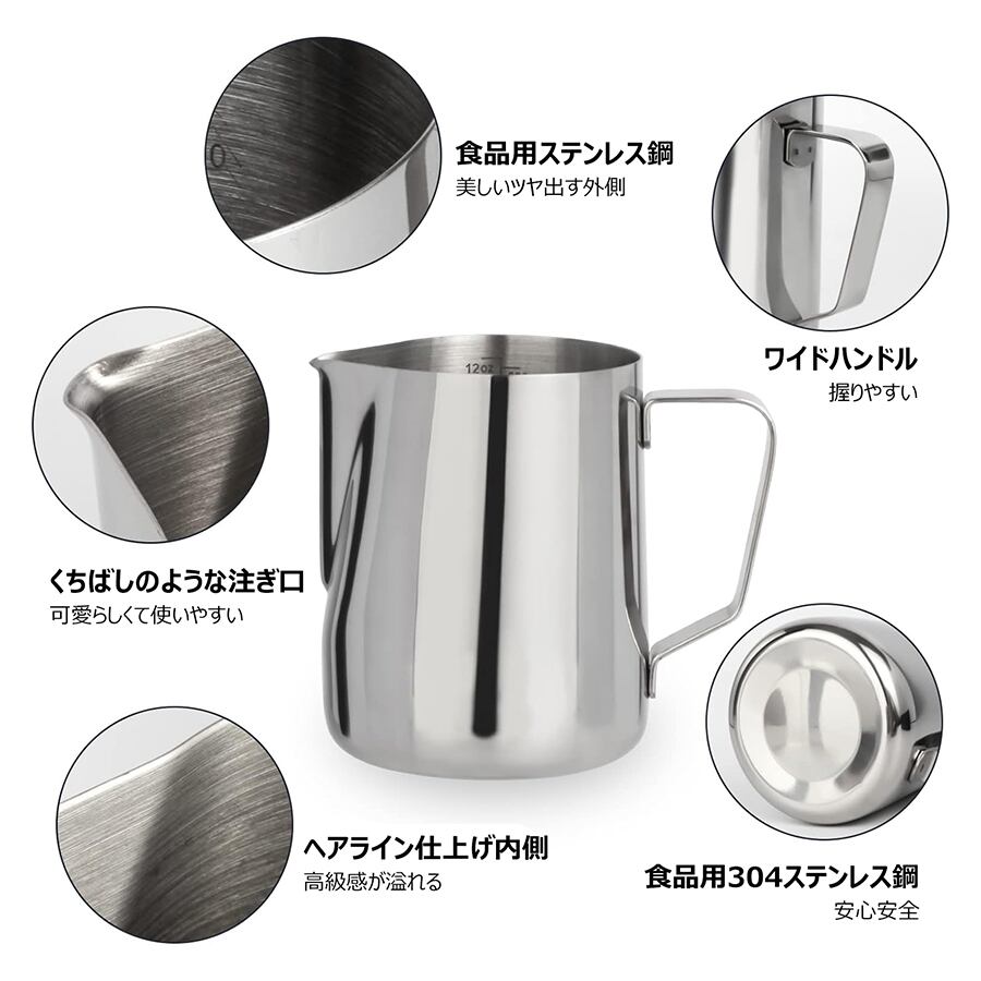 ルクピッチャーは、コーヒーや紅茶を楽しむためのエレガントで実用的なキッチンアクセサリーです。高品質なステンレス製で、長期間の使用に耐える耐久性を持ち、美しい光沢を保ちます。コンパクトなデザインで、どんなテーブルセッティングにも調和しやすく、使いやすい形状が特徴です。広口の注ぎ口により、ミルクやクリームをスムーズに注ぐことができ、液だれしにくい設計です。また、取っ手が付いているため、手にしっかりとフィットし、持ちやすくなっています。手入れも簡単で、食洗機対応のモデルが多く、清潔さを保つことができます。ミルクピッチャーは、日常の飲み物の時間を優雅に演出し、テーブルに上品なアクセントを加えるための欠かせないアイテムです。
